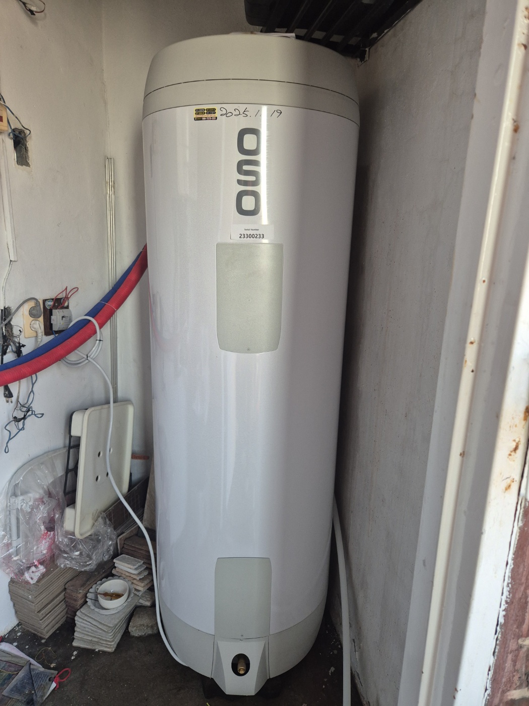 금일 시공할 제품은 노르웨이 산 오소300리터 전기온수기입니다.