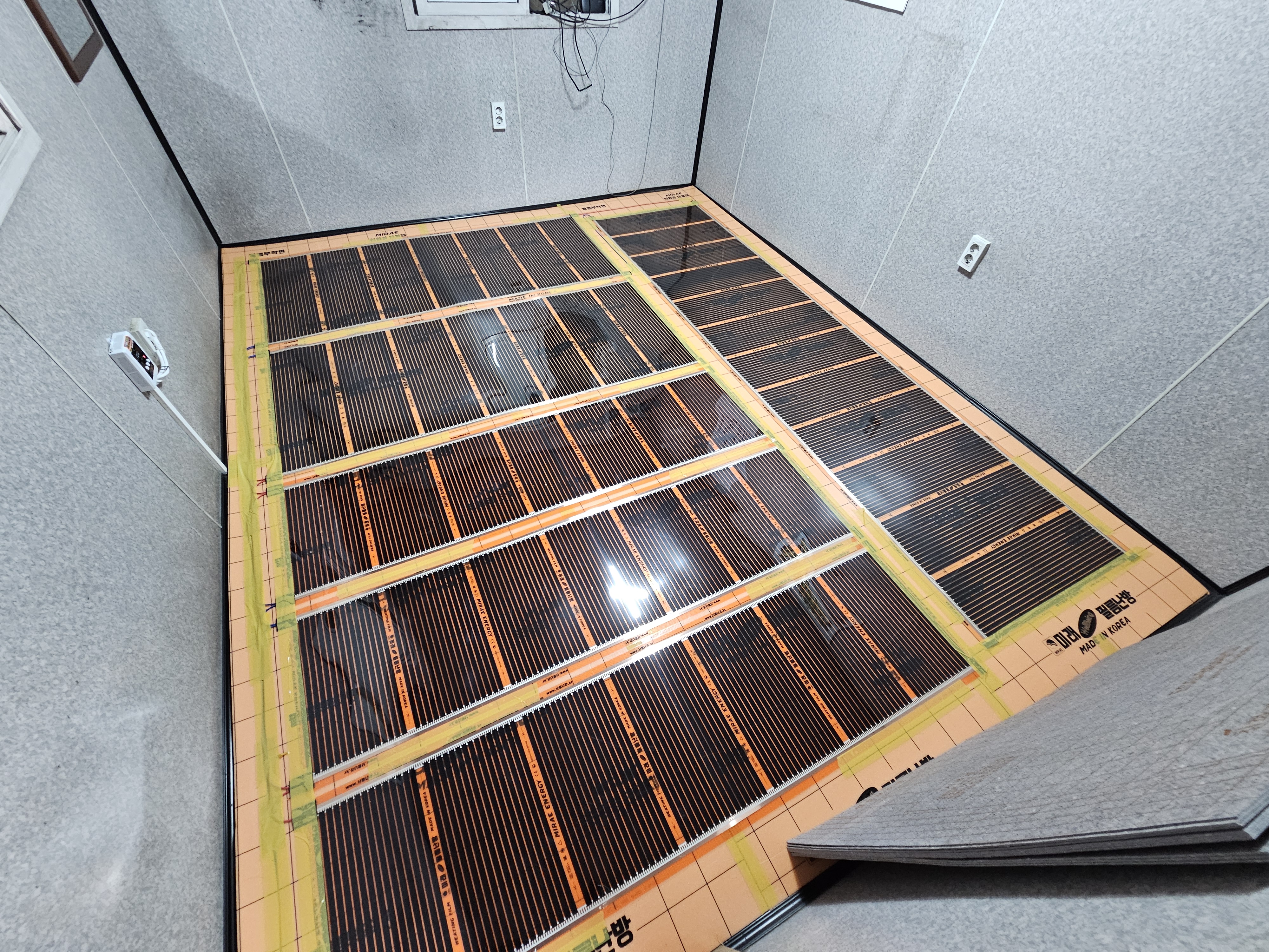 필름난방을 재단하여 배치를 하고, 결선작업을 진행 하였습니다.